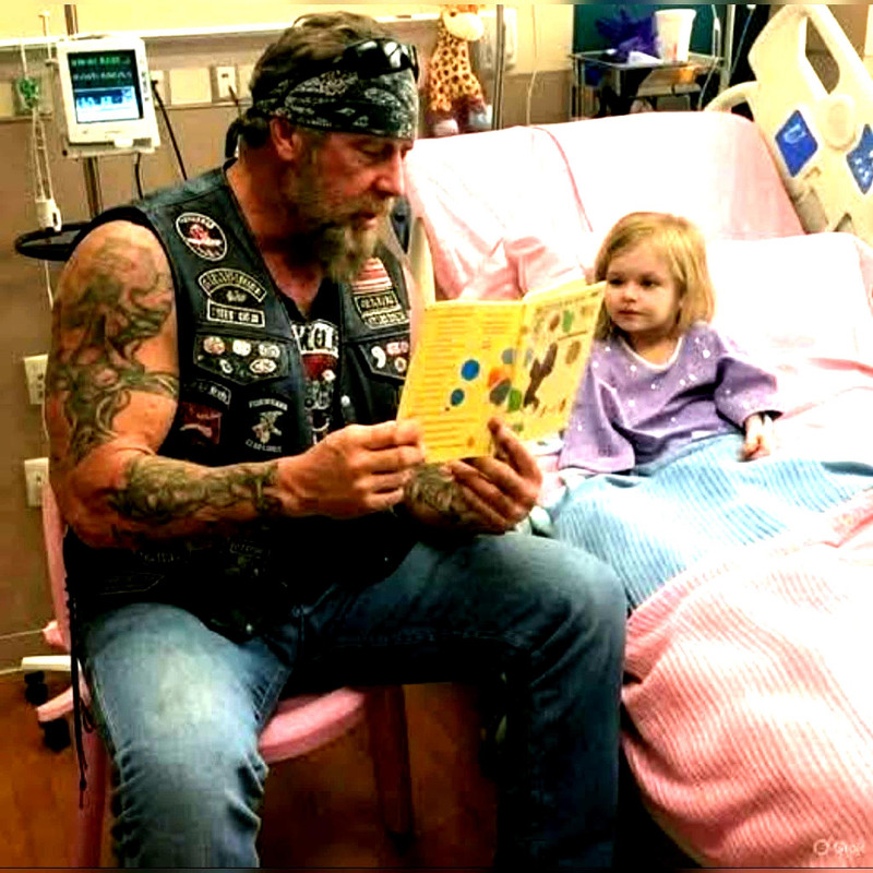 Мене звати Майк. Мені 58. Я — здоровенний, бородатий байкер у татуюваннях, який їздить із мотоклубом Defenders. Але щочетверга я перетворююся на людину, що просто читає казки дітям у Дитячій лікарні. Ми робимо це вже п’ятнадцять років.