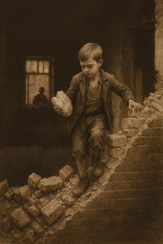 Щоночі Едді спав за пекарнею в Бірмінгемі, притулившись до крижаної цегляної стіни, намагаючись зберегти хоч трохи тепла. А щоранку мовчки чекав біля чорного входу — сподіваючись, що пекар, містер Гарріс, знову винесе черствий хліб. Для Едді цей хліб був не просто їжею. Це була надія.