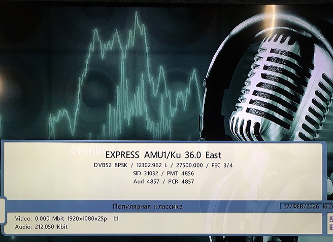 на частоте 12.226 L 27.500 Fec-3/4 DVB S /QPSK/MPEG 2/SR Открыто