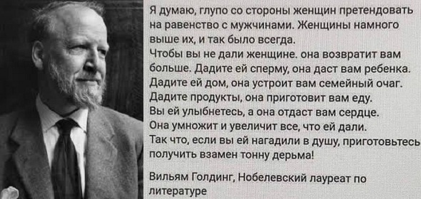 Он знает, что баба - существо глупенькое, но зато тёплое, ласковое и с