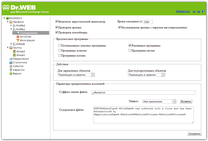 Дополнительные сведения о программе представлены на странице Dr.Web для MS Exchange